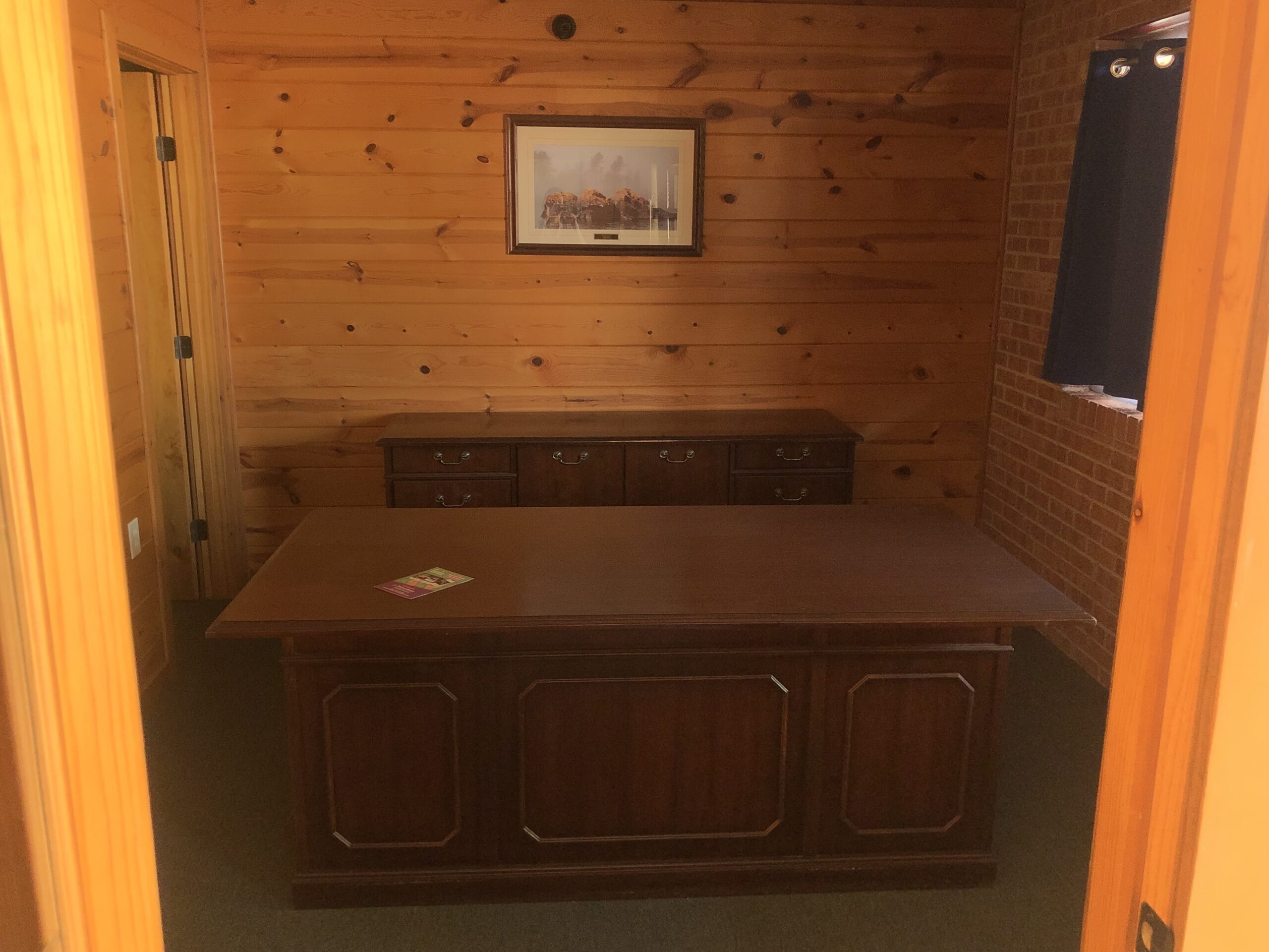 • Interior is finished in knotty pine.